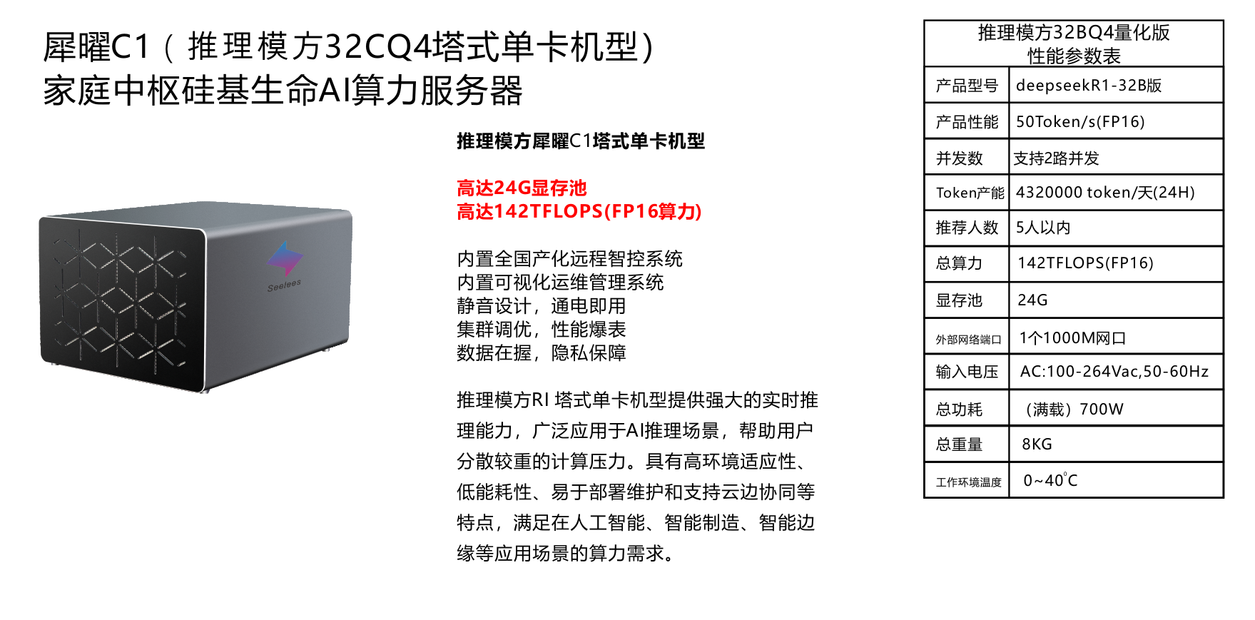A:家庭AI智能体算力服务器:犀曜C1:家庭硅基生命AI算力服务器(满足3~5人的家庭使用)。
